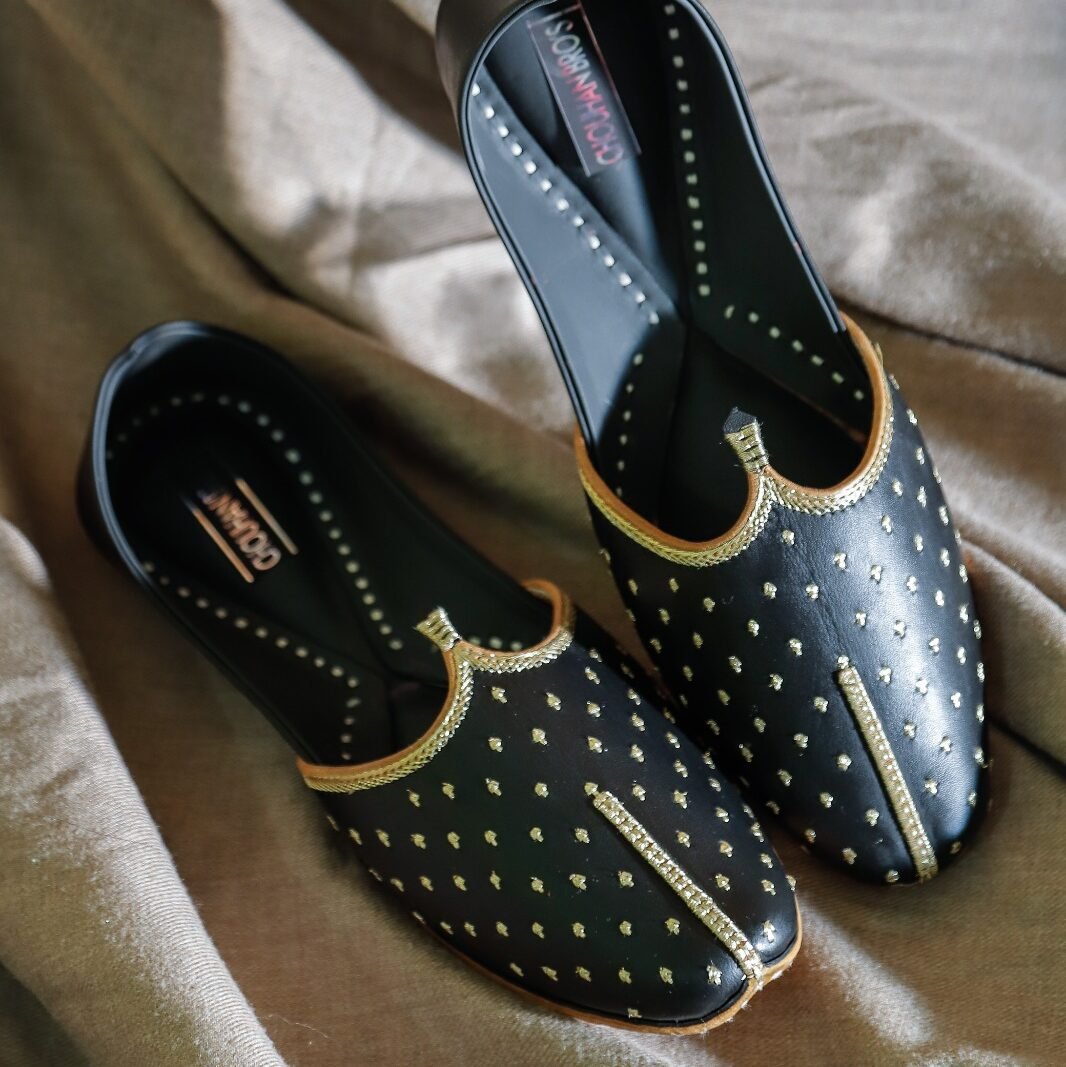 Crafted from premium-quality pure leather, these juttis promise comfort that lasts all day. Their durable construction ensures that you can rely on them for long-term use without compromising on aesthetics. The unique design, featuring a padded sole, provides ease for your feet, making them perfect for frequent wear or extended use during events and celebrations.